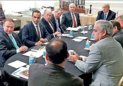 ரஷ்ய ஜனாதிபதி விளாடிமிர் புட்டினுடன், அப்போது வேட்பாளராக இருந்த டொனால்ட் ட்ரம்ப்