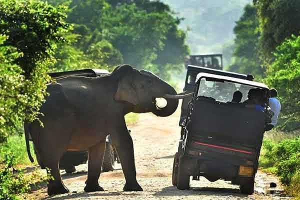 யால சரணாலயம், கதிர்காமம் வீதிகளில் உலா வரும் யானைகளுக்கு உணவு வழங்க...