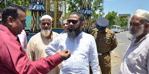 வர்த்தகர் ஒருவரைக் கைதுசெய்யுமாறு கூறி மட்டக்களப்பு தலைமையகப் பொலிஸ் நிலையத்துக்கு முன்பாக திரண்ட மட்டக்களப்பு, திராய்மடுப்...