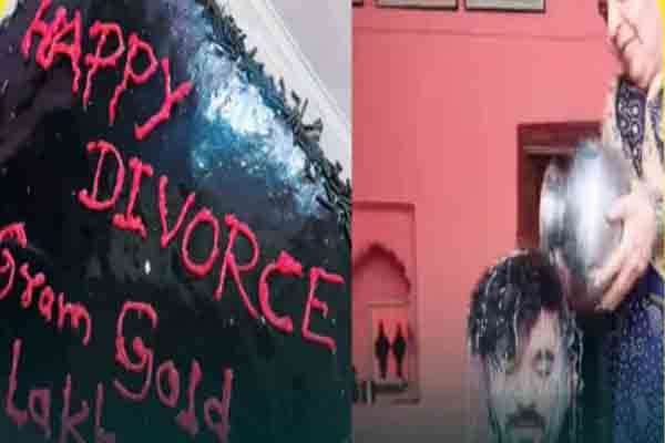 விவாகரத்து ஸ்வீட் கொடுத்து கொண்டாடும் மகனுக்கு பாலபிஷேகம் செய்த தாய்