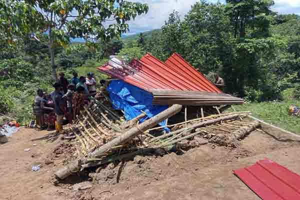 புளியாவத்தையில் வீடுகளை சேதப்படுத்திய மரம்