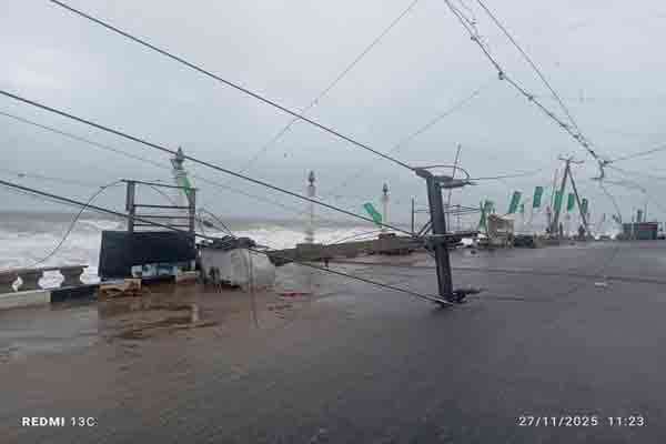 கல்முனை கடற்கரை பள்ளிவாசல் கடற்கரை பகுதி வீதி தற்காலிகமாக மூடப்பட்டது. அப்பகுதியில் உயர் அழுத்த மின்கம்பம் உடைந்து வீழ்ந்ததில் குறித்த வீதி மூடப்பட்டுள்ளது.