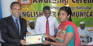 மட்டக்களப்பு பலக்லைக்கழக கல்லூரியில் தொடர்பாடலுக்கான ஆங்கிலம் எனும் குறுகிய கால பாடநெறியை பூர்த்தி செய்த ...