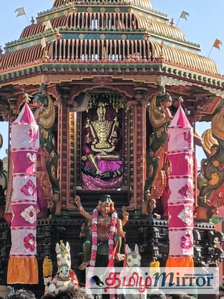 ஆலயத்தை சூழவுள்ள வீதிகளில் அம்பாள் தேரில் பவனி வந்தபோது, திரளான அடியார்கள் "ஆரோகரா" கோஷங்களுடன் தேரை இழுத்துத் தங்களது நேர்த்திக் கடன்களை நிறைவேற்றியதுடன், மிகுந்த பக்தியுடன் வழிபாடுகளில் ஈடுபட்டதனையும் காணக்கூடியதாக இருந்தது.