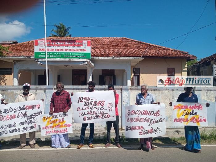 தமிழீழ விடுதலை இயக்கத்தின் (TELO) தலைவர் நாடாளுமன்ற உறுப்பினர் செல்வம் அடைக்கலநாதனின் தலைமைத்துவத்திற்கு எதிர்ப்புத் தெரிவித்தும், கட்சியின் 12-வது தேசிய மகாநாட்டை உடனடியாகக் கூட்டி புதிய நிர்வாகிகளைத் தெரிவு செய்ய வலியுறுத்தியும் இன்று (27) திருகோணமலையில் கவனயீர்ப்புப் போராட்டம் ஒன்று முன்னெடுக்கப்பட்டது.