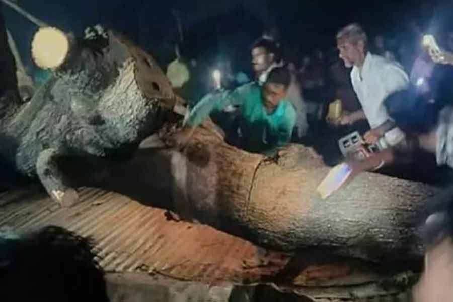 அப்போது எதிர்பாராத விதமாக ஏற்பட்ட பலத்த காற்று காரணமாக அங்கிருந்த மரம் முறிந்து பக்தர்கள் நின்றுகொண்டிருந்த மேற்கூரை மீது விழுந்தது. இதில், கூரையின் கீழ் நின்றுகொண்டிருந்த பக்தர்கள் சிக்கிக்கொண்டனர்.
