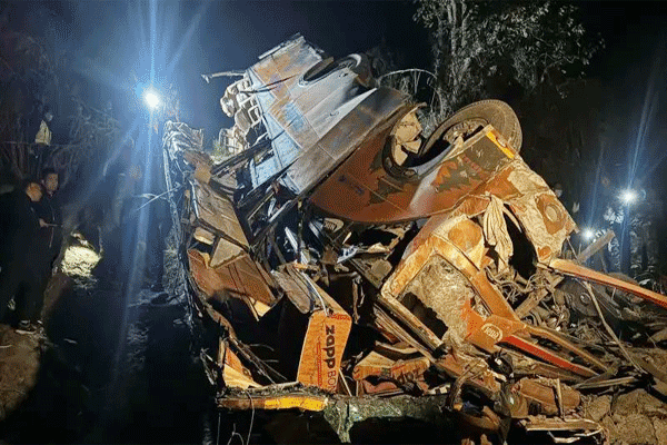 காயமடைந்தவர்கள் மருத்துவமனை அனுமதிக்கப்பட்டு சிகிச்சை அளிக்கப்பட்டு வருகிறது. பஸ் சுக்கு நூறாக உடைந்துள்ளது. இந்த விபத்து அதிகாலை 2 மணிக்கு நிகழ்ந்துள்ளதாக தகவல் வெளியாகி உள்ளது.