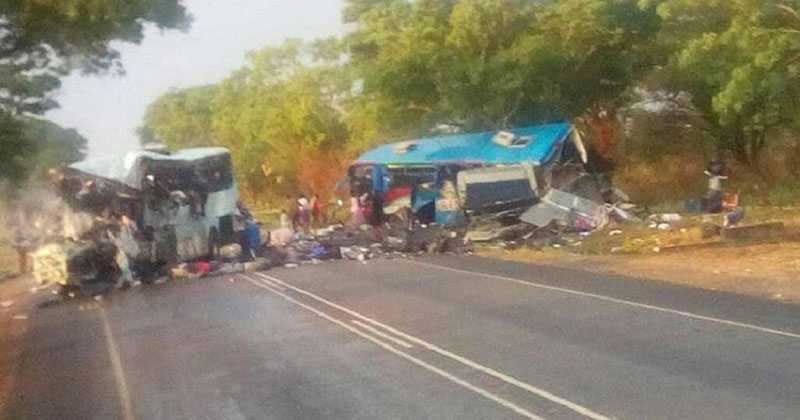 கிழக்கு நகரமான முத்தரேயிலிருந்து தலைநகர் ஹராரேயை நோக்கிச் சென்ற பஸ்ஸொன்றும், அதற்கு எதிர்த்திசையில் பயணித்துக் கொண்டிருந்த இன்னொரு பஸ்ஸும், றுஸாப்பே என்ற நகரத்தில் வைத்து மோதிக் கொண்டன.