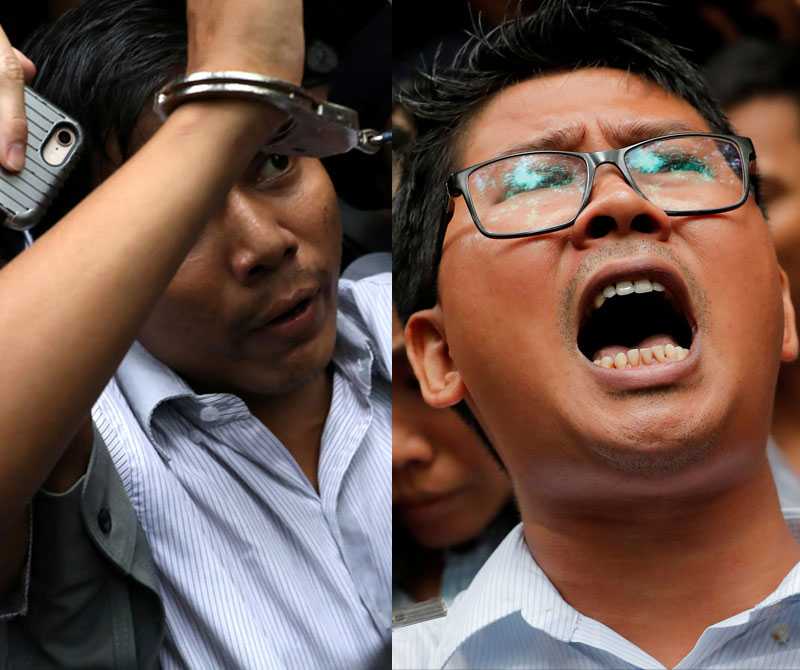ராக்கைன் மாநிலத்திலுள்ள இன் டின் என்ற பகுதியில், றோகிஞ்சா முஸ்லிம்கள் 10 பேர் கொல்லப்பட்ட விடயம் தொடர்பாகவும், பொலிஸாரும் படையினரும் இணைந்து மேற்கொண்டனர் எனக் கூறப்படும், வேறு குற்றங்கள் தொடர்பாகவும், இவ்விரு ஊடகவியலாளர்களும் செய்தி சேகரித்துக் கொண்டிருந்த போது, கடந்தாண்டு கைதுசெய்யப்பட்டிருந்தனர். தங்களுடைய செய்திச் சேகரிப்புக்காக, இரகசியத் தகவல்களை, சட்டவிரோதமாகப் பெற்றனர் என்பதே, இவர்கள் மீதான குற்றஞ்சாட்டாக இருந்தது.