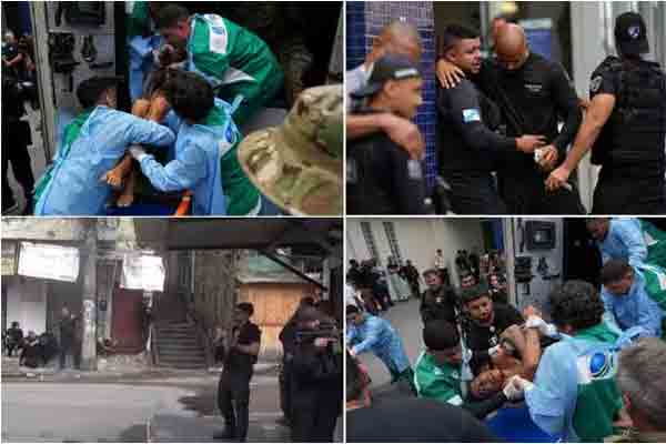 பிரேசிலின் ரியோ டி ஜெனிரோவில் போதைப்பொருள் கடத்தல் கும்பல் நடமாட்டம் அதிகரித்தது. இதனை தடுக்க 2500க்கும் மேற்பட்ட பிரேசில் பொலிஸார் சோதனை நடத்தினர். இந்த சோதனையின் போது கடத்தல் கும்பலை சேர்ந்தவர்கள் துப்பாக்கிச்சூடு நடத்தினர்.