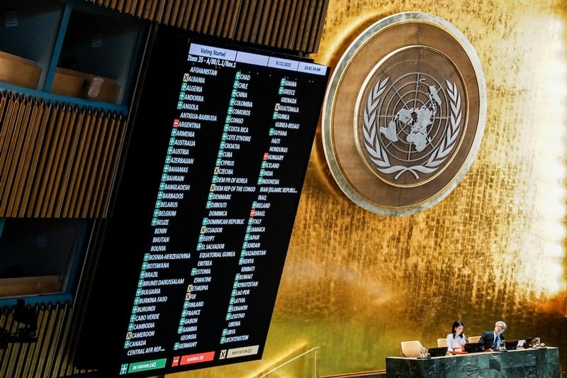 ஹமாஸின் பங்களிப்பில்லாமல் இஸ்ரேல், பலஸ்தீனத்துக்கிடையிலான இரு தேசத் தீர்வைக் கோரும் தீர்மானமொன்றுக்கு ஐக்கிய நாடுகளின் பொதுச் சபையானது வெள்ளிக்கிழமை (12) வாக்களித்துள்ளது.