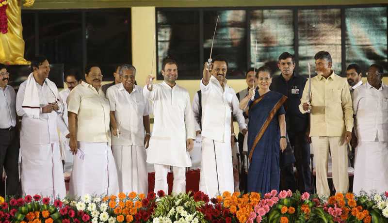 இந்நிகழ்வில் ஐக்கிய முற்போக்குக் கூட்டணியின் தலைவர் சோனியா காந்தி, காங்கிரஸ் தலைவர் ராகுல் காந்தி, கேரள முதலமைச்சர் பினராயி விஜயன், ஆந்திர மாநில முதலமைச்சர் சந்திரபாபு நாயுடு, புதுவை முதலமைச்சர் வி. நாராயணசாமி உள்ளிட்ட தலைவர்கள் பங்குகொண்டிருந்தனர்.