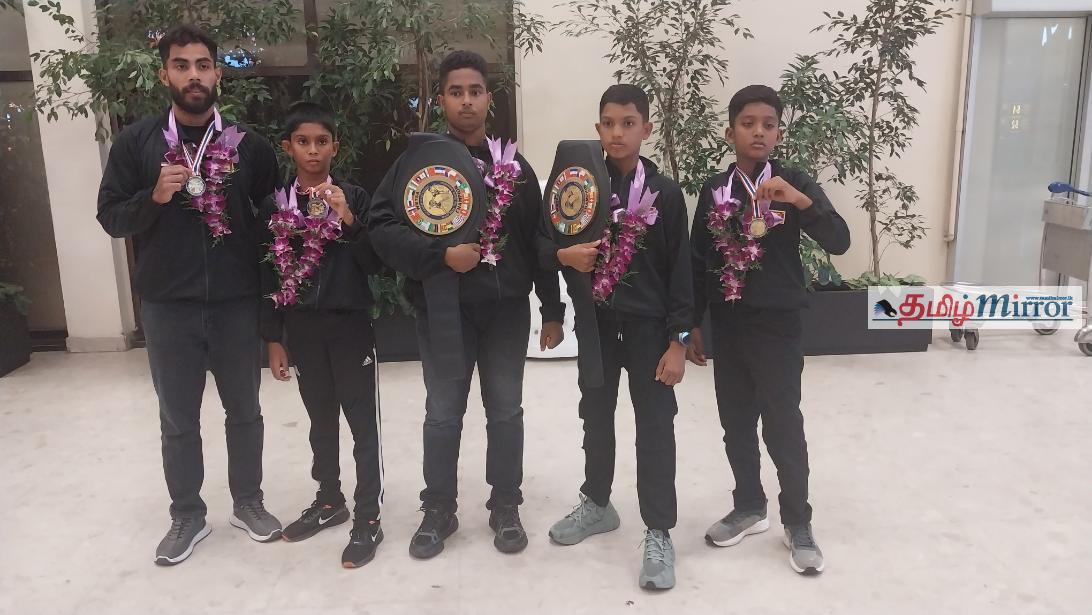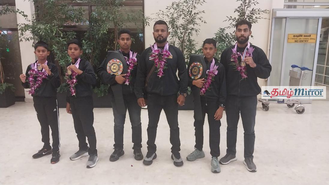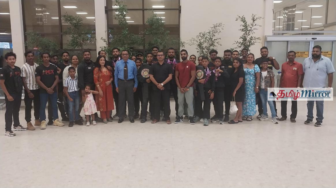 தாய்லாந்தில் நடைபெற்ற 7-வது உலக முய் தாய் சாம்பியன்ஷிப் (Muay Thai World Championship) போட்டியில் பங்கேற்று, 2 சாம்பியன் பட்டங்களையும் (Belts) 3 தங்கப் பதக்கங்களையும் வென்ற இலங்கை வீரர்கள் இன்று (20) அதிகாலை கட்டுநாயக்க விமான நிலையத்தை வந்தடைந்தனர்.