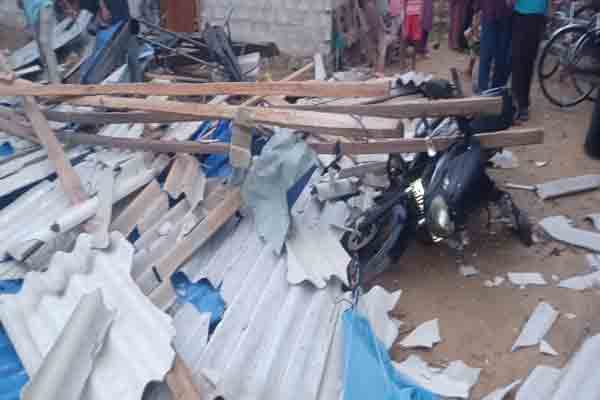 இதில் குறித்த வீட்டின் கூரைகள் காற்றினால் வீசப்பட்டதோடுட உபகரணங்களும் சேதமாகியுள்ளதாக தெரிவிக்கப்படுகிறது.