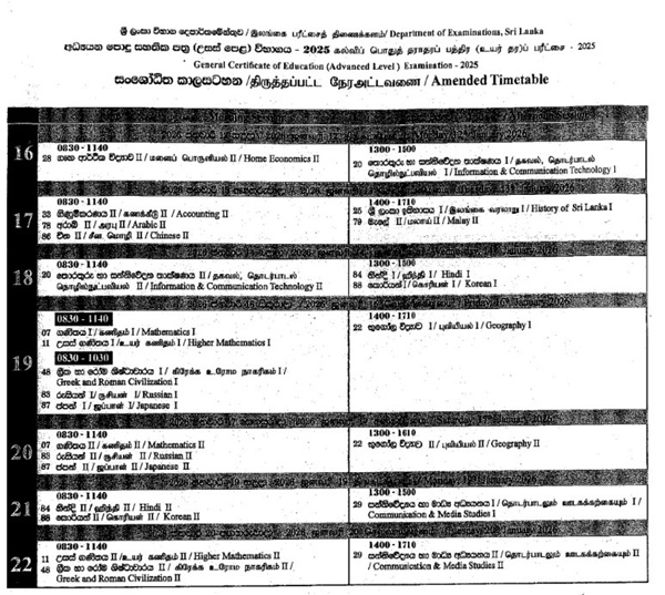 க.பொ.த உயர்தரப் பரீட்சையில் நடைபெறாத பாடங்களுக்கான நேர அட்டவணை இன்று (10) வெளியிடப்பட்டது.