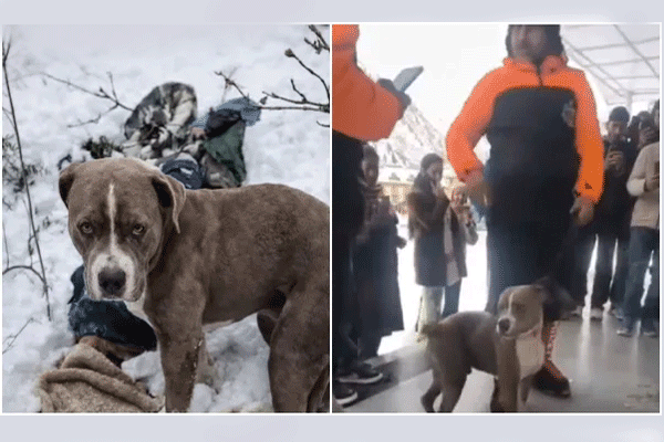 கடும் குளிரைத் தாங்கும் உடை அணிந்திருந்தாலும் கூட கடும் குளிர் இங்கு வாட்டி வதைக்கும். மனிதர்கள் வெளியே வரக் கூட ஒரு முறைக்குப் பல முறை யோசிப்பார்கள். ஆனால், இந்த இடத்திலும் பிட்புல் நாய் தனது விசுவாசத்தைக் காட்டியுள்ளது.