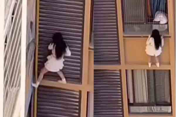 சமூக வலைதளங்களில் வேகமாக பரவும் ஒரு வீடியோவில், ஒரு பெண் 10-வது மாடி பால்கனியில் குதித்து தொங்கியடி, தப்பி ஓடுவது போன்ற காட்சி தெரிகிறது. இதை பார்த்தால் இதயத்துடிப்பு கூட அதிகரிக்கிறது. இந்த சம்பவம் சீனாவின் குவாங்டோங் மாகாணத்தில் நடந்ததாக கூறப்படுகிறது.