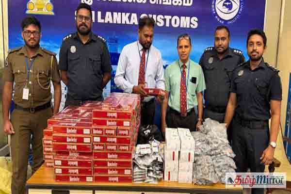 இவர்கள் கொண்டு வந்த பயணப் பொதிகளுக்குள் மறைத்து வைக்கப்பட்டிருந்த வெளிநாட்டில் தயாரிக்கப்பட்ட "மென்செஸ்டர்" வகை 352 கார்ட்டூன்கள் மற்றும் 03 பாக்கெட்டுகளில் இருந்த 70,460 சிகரெட்டுகள், பல்வேறு வகையான மருந்து பொருட்கள் மற்றும் வாசனை திரவியங்கள் என்பன கைப்பற்றப்பட்டுள்ளன.