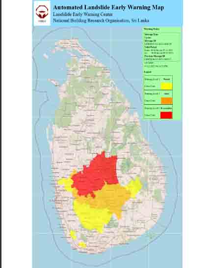 கண்டி, கேகாலை,குருணாகல் மற்றும் மாத்தளை ஆகிய மாவட்டங்களிலேயே இந்த சிவப்பு எச்சரிக்கை விடுக்கப்பட்டுள்ளது.