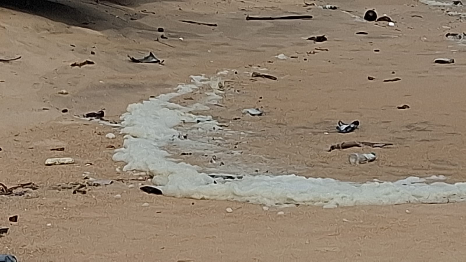 அண்மையில் வடக்கில் இவ்வாறான நுரையை பாரிய அளவில் கடல் அலைகள் தள்ளி வந்ததை போல இப்போது காத்தான்குடி கடலில் நுரை அலைகளோடு வெளியேறி வருகிறது