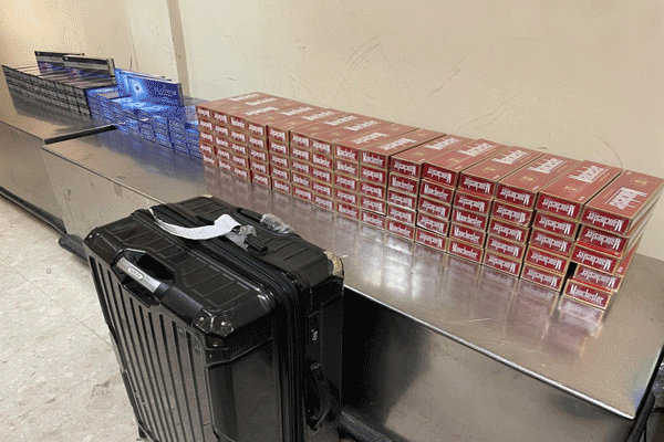சந்தேக நபர் கொண்டு வந்த இரண்டு பயணப் பொதிகளுக்குள் இருந்து 30,000 வெளிநாட்டுத் தயாரிப்பு "மான்செஸ்டர்" மற்றும் "பிளாட்டினம்" வகை சிகரெட்டுகள் அடங்கிய 150 அட்டைப்பெட்டிகள் கைப்பற்றப்பட்டுள்ளது.