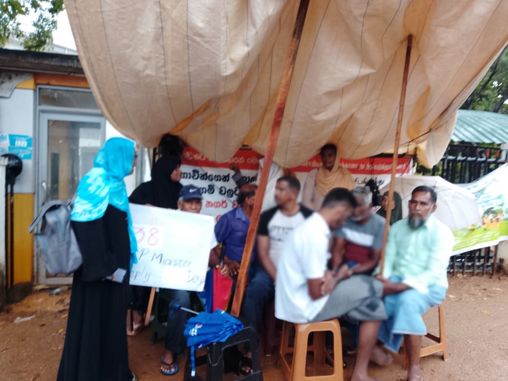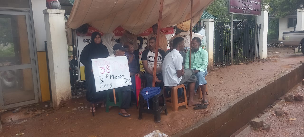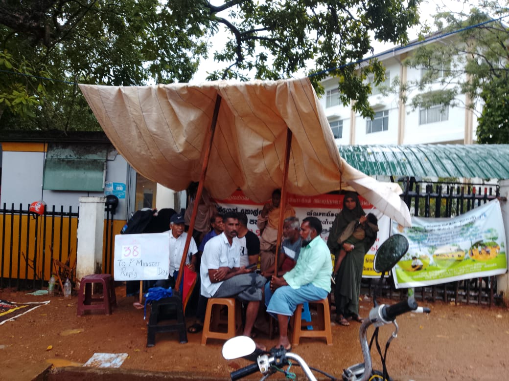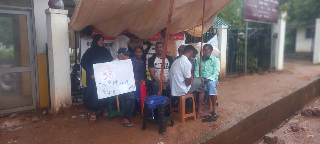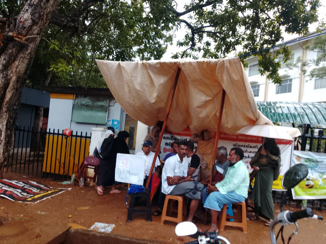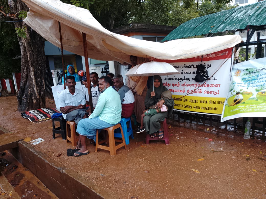 திருகோணமலை முத்து நகர் விவசாயிகள் கொட்டும் கனமழையிலும் வௌ்ளிக்கிழமை (24) அன்று 38 வது நாளாக தொடர் சத்தியாக் கிரகப் போராட்டத்தில் ஈடுபட்டு வருகின்றனர்.