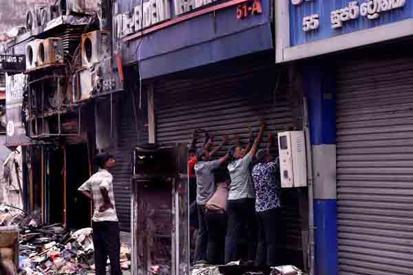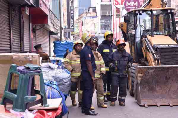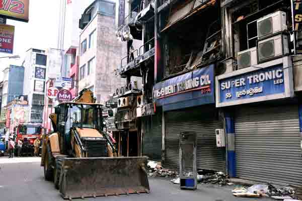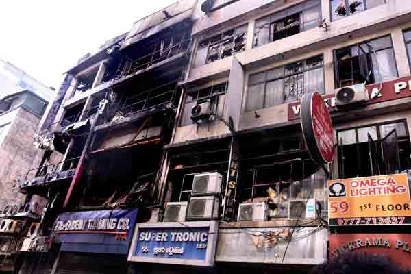 கடந்த சனிக்கிழமை (20) அன்று புறக்கோட்டையில் இடிந்து விழுந்த கட்டிடத்தின் காட்சிகள். புறக்கோட்டையில் உள்ள விக்ரமா பிளாசா 59 கட்டிடத்தில் தீ விபத்து ஏற்பட்டது.