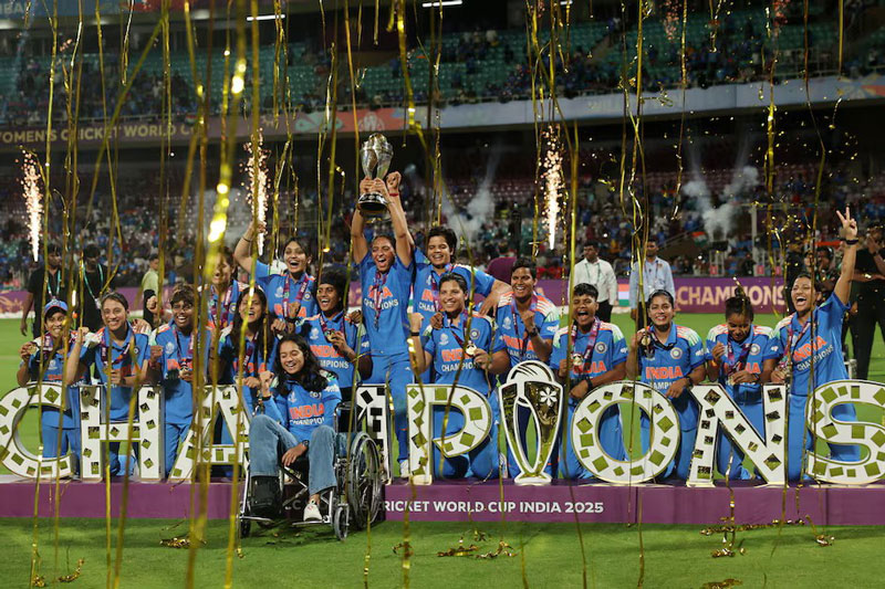 நவி மும்பையில் ஞாயிற்றுக்கிழமை (02) நடைபெற்ற தென்னாபிரிக்காவுடனான இறுதிப் போட்டியில் வென்றமையைத் தொடர்ந்தே இந்தியா சம்பியனானது.