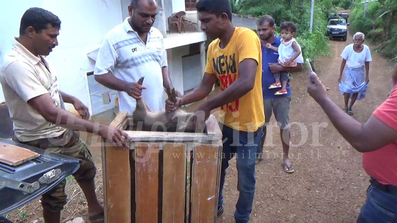 மாத்தளை, தெமடகொல்ல பிரதேசத்தில், 70 அடி ஆழமான பாழடைந்த கிணற்றில் விழுந்திருந்த காட்டுப் பன்றியை, வனஜீவராசிகள் திணைக்கள அதிகாரிகள், மிகுந்த பிரயத்தனத்தின் மத்தியில் உயிருடன் மீட்டுள்ளனர். (இந்திக அருண குமார)