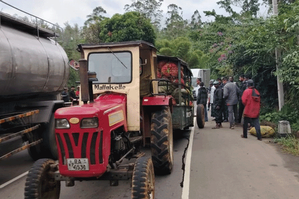 தலவாக்கலை லோகி தோட்டத்தில் இருந்து தேயிலை கொழுந்து ஏற்றிச் சென்ற டிராக்டர் வாகனம் ஹட்டன் - நுவரெலியா பிரதான வீதியில் தலவாக்கலை லோகி தேயிலை தொழிற்சாலைக்கு அருகாமையில் வைத்து திங்கட்கிழமை (02) மாலை விபத்துக்குள்ளானதாக லிந்துலை பொலிஸார் தெரிவித்தனர்.