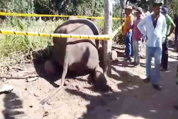 விவசாய நிலமொன்றில் யானையொன்று உயிரிழந்து கிடப்பதாக பொலிஸாருக்கு கிடைத்த தகவலையடுத்து முன்னெடுக்கப்பட்ட சோதனையின் போது யானையின் சடலம் மீட்கப்பட்டது.