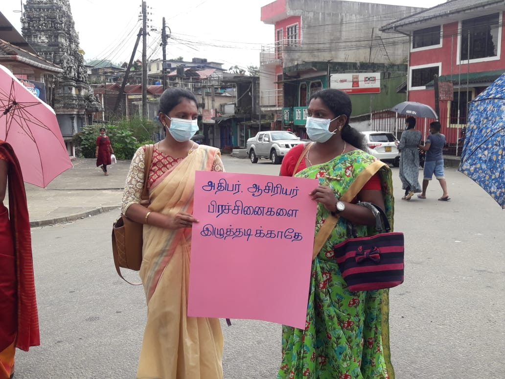 இதற்கமைய நுவரெலியா, தலவாக்கலை, பொகவந்தலாவை, மஸ்கெலியா , பதுளை உள்ளிட்ட பல நகரங்களில் அதிபர்−ஆசிரியர்களால் ஆர்ப்பாட்டம் முன்னெடுக்கப்பட்டது.